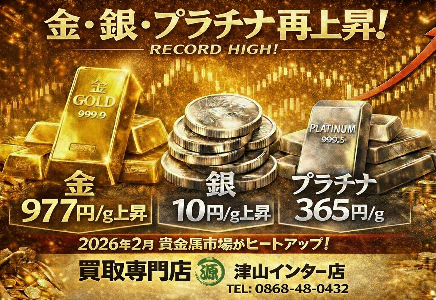 取専門店 源 津山インター店では、金プラチナの買取価格を100%保証致します。