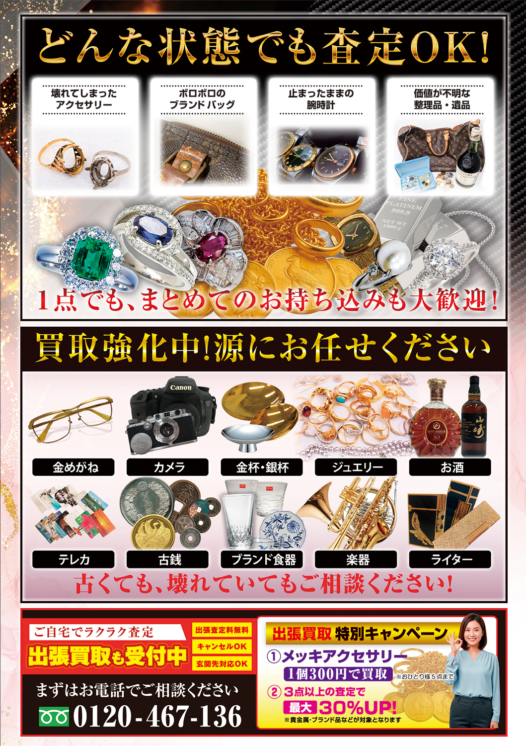 LINE査定、ご自宅にお伺いする出張買取などもございますのでお気軽にご連絡ください。