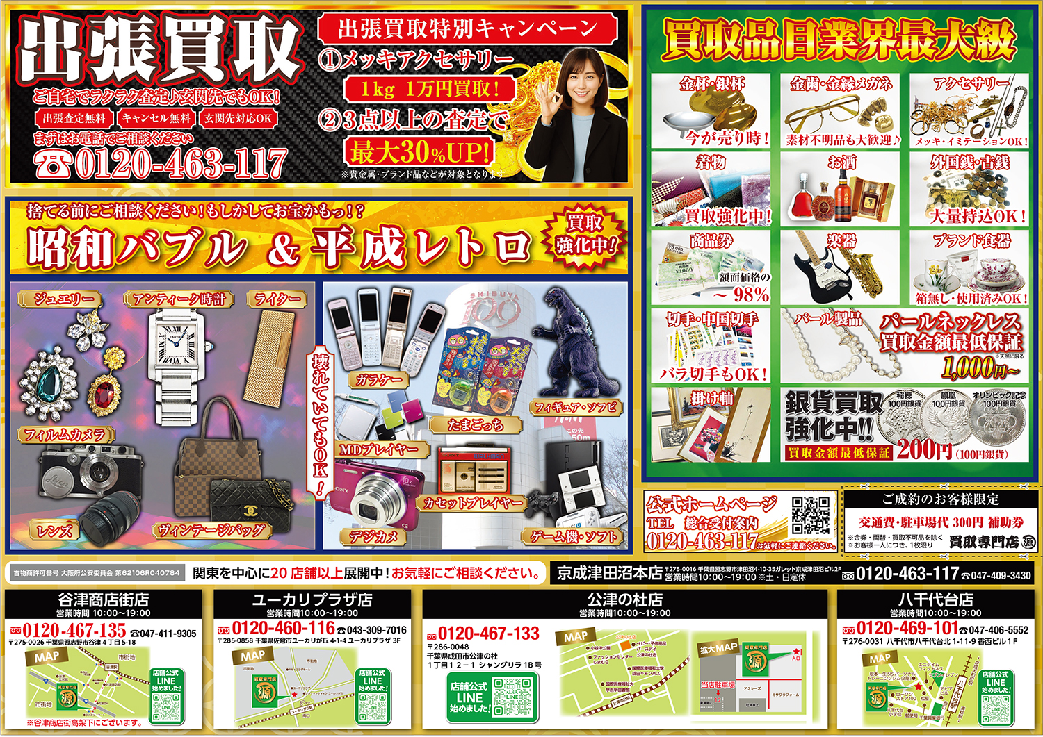 LINE査定、ご自宅にお伺いする出張買取などもございますのでお気軽にご連絡ください。