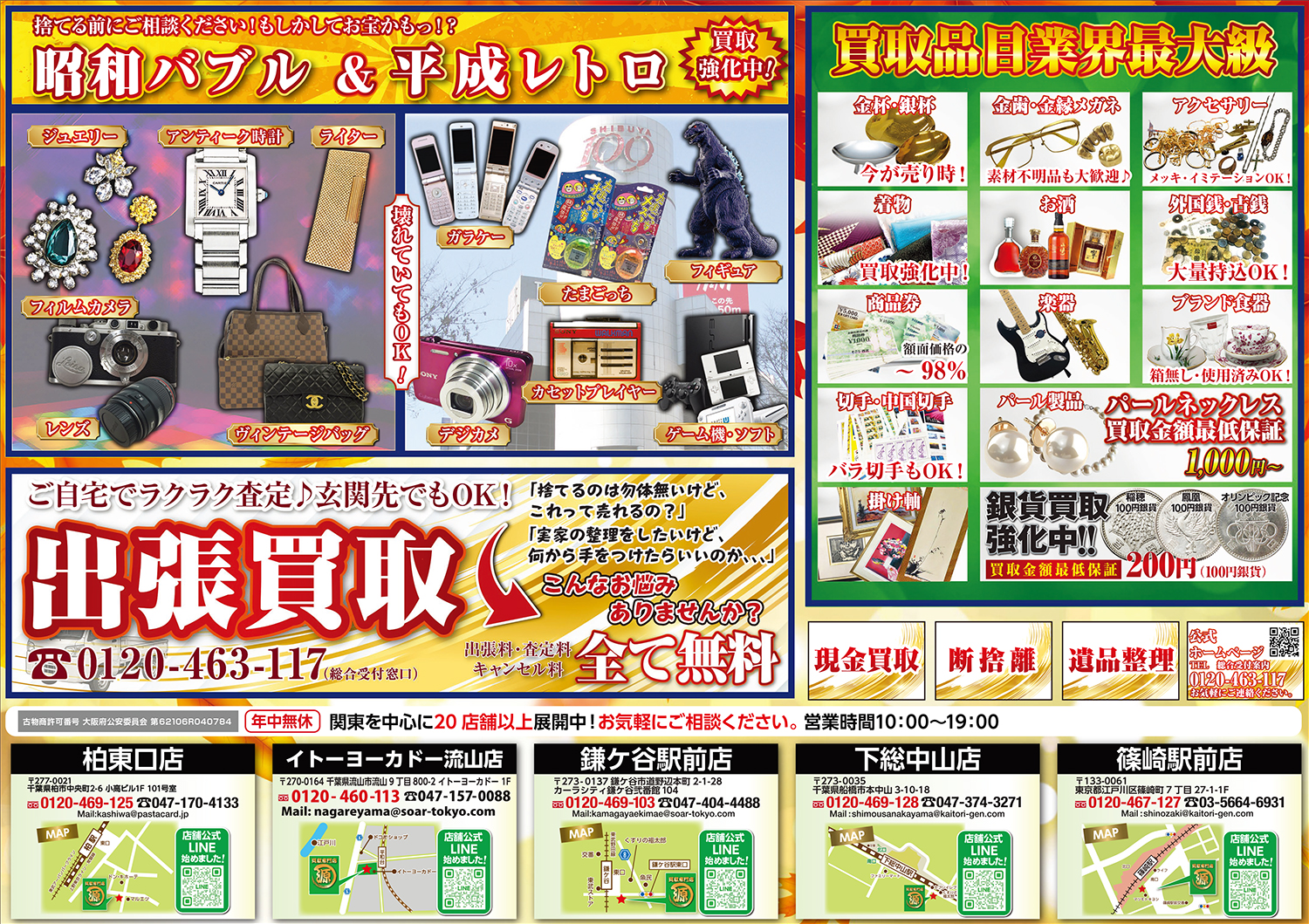 LINE査定、ご自宅にお伺いする出張買取などもございますのでお気軽にご連絡ください。