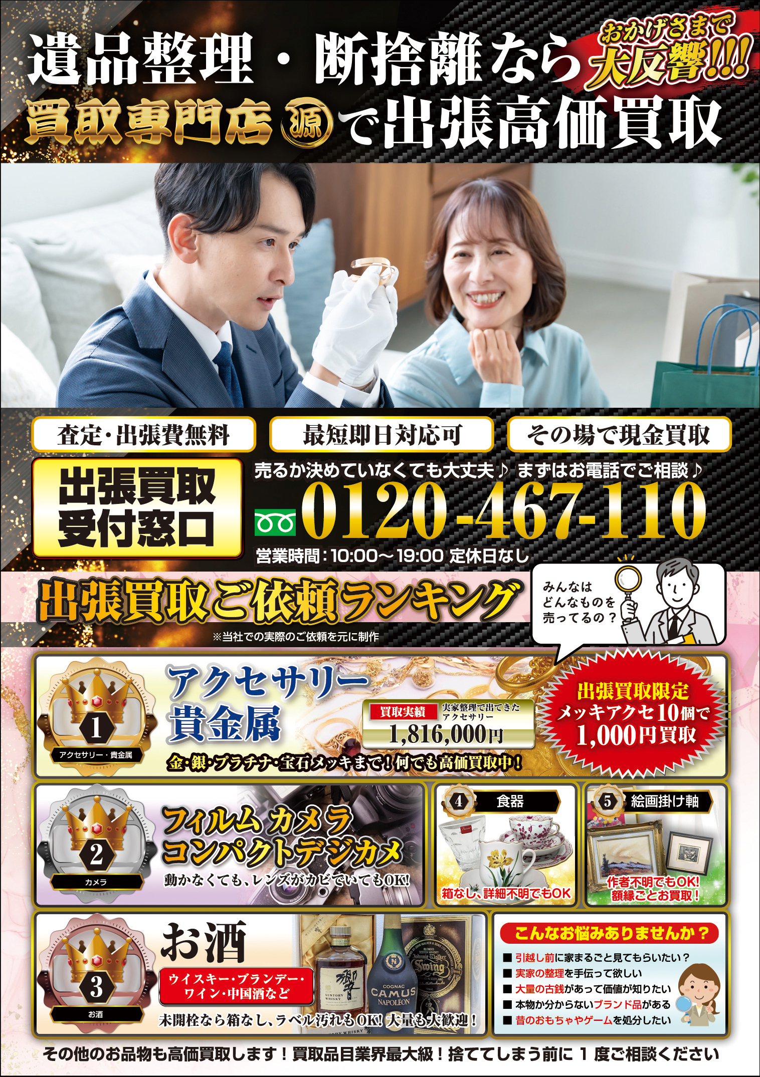 LINE査定、ご自宅にお伺いする出張買取などもございますのでお気軽にご連絡ください。