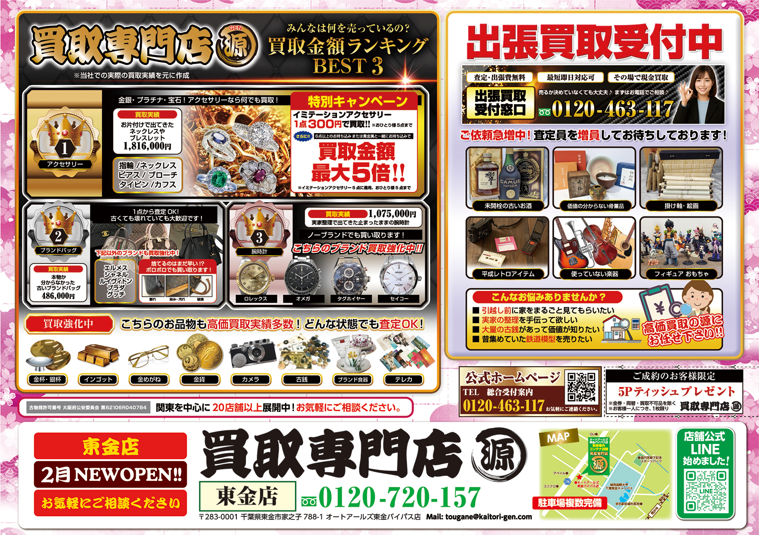 LINE査定、ご自宅にお伺いする出張買取などもございますのでお気軽にご連絡ください。